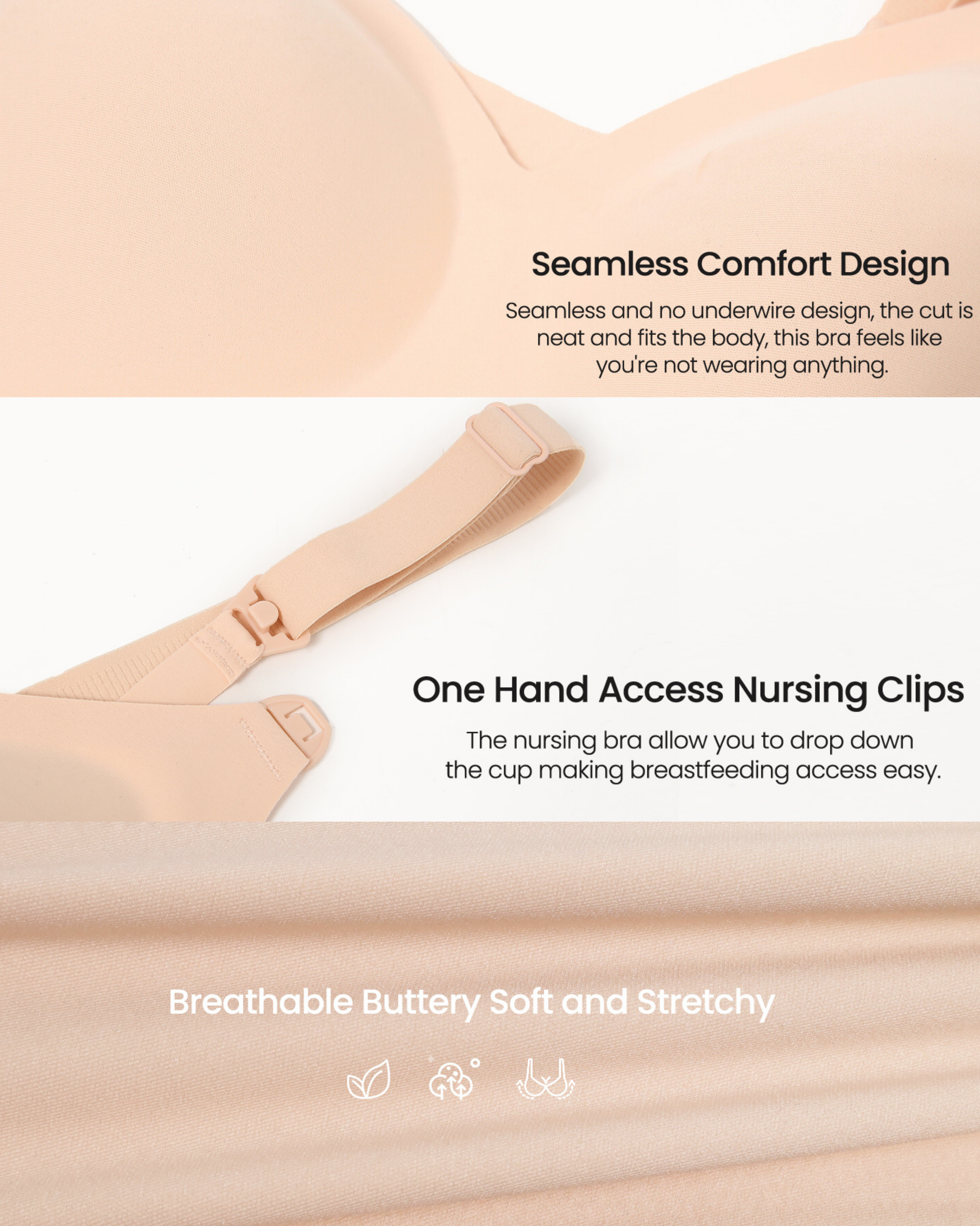 استمتعي بالراحة والأناقة والوظائف العملية مع حمالة الصدر الناعمة للغاية والخالية من الخياطة، المصممة بعناية لتمنحك الدعم أثناء الحمل، الرضاعة، وما بعدهما.